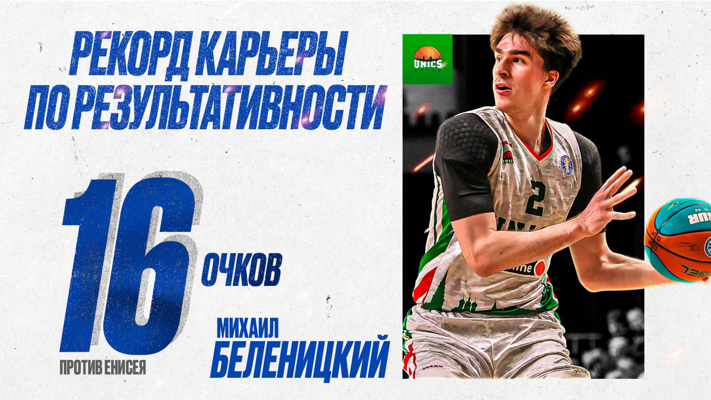 У Михаила Беленицкого – лучший матч по результативности в карьере! 👏 В игре против «Енисея» 22-летний форвард отмечается 16 очками, 4 подборами, 2 перехватами и 16 баллами эффективности 📊 Баскетболист УНИКСа реализует 4/5 дальних попытки – это лучший результат в карьере 🎯 🔥 – выступлению спортсмена, претендующего на награду «Лучшему молодому игроку» в этом сезоне!