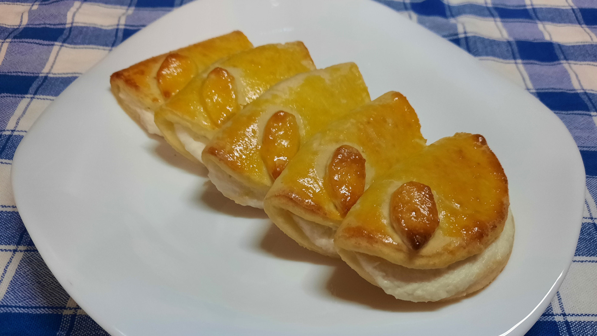Нам понадобится: 1. Творог (лучше брать творог в брикетах, не зерненый) – 260г (100г в тесто, 160г в начинку) 2. Яйцо – 2 шт. (1 в тесто, а от второго белок в начинку, а желтком смазываем сочники) 3. Сахар – 4 ст. л. (2 в тесто, 2 в начинку) 4. Мука - 70г в тесто + 20г для присыпки стола 5. Крахмал кукурузный – 40г 6. Разрыхлитель – 1/2ч.л. 7. Ванилин – по вкусу - Тесто: в глубокую миску добавляем 100г творога, 1 яйцо, 2 столовые ложки сахара, просеянную муку с крахмалом, разрыхлитель, ванилин, замешиваем тесто и убираем его в холодильник на 15 минут. - Начинка: 160г творога смешиваем с 2-мя столовыми ложками сахара, белок, все хорошенько перемешиваем. - Раскатываем тесто и формочкой вырезаем круги. На половину круга выкладываем начинку, а второй частью прикрываем. - Смазываем наши сочники желтком и выпекаем в разогретой до 180 градусов духовке 20 минут. У меня получилось 8 сочников!!! Наши вкусненькие сочники готовы!!! Приятного аппетита!!!???