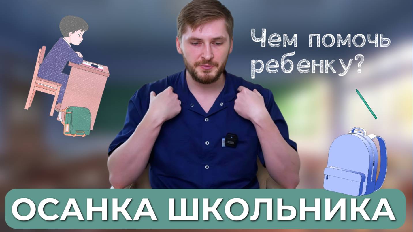 Как не испортить осанку своему ребёнку? Антон Злобин, мануальный терапевт Центра доктора Очеретиной (г. Москва) расскажет о том, какие неблагоприятные факторы могут изменить осанку ребенка и привести к появлению искривления и сколиоза. Тайм-код: 0:00 Начало 0:22 Рюкзак. Как выбрать рюкзак первокласснику? Правильный ранец для начальной школы 1:11 Как подобрать безопасную обувь для ребенка? 1:27 Поза ученика за партой и за рабочим столом 1:53 Режим дня школьника 2:44 самостоятельный осмотр ребенка родителями. Как определись, есть ли искривления? Имеются противопоказания, необходима консультация специалиста. __________________________________ #осанка #сколиоз #школа __________________________________ БОЛЬШЕ ПОЛЕЗНОЙ ИНФОРМАЦИИ Сайт сети клиник «Центра доктора Очеретиной» https://ocheretina.ru Бесплатная консультация по МРТ https://ocheretina.ru/consultation/ Написать лично Ирине Геннадьевне: Одноклассники https://ok.ru/ocheretina ВКонтакте https://vk.com/irina_ocheretina Телеграмм https://t.me/budem_zdorovimi ___________________________________ 📱 Телефон для записи на прием 8-800-555-10-42 (по России бесплатно) Наши клиники: ЦЕНТР ДОКТОРА ОЧЕРЕТИНОЙ: ✅ г. Москва, Брюсов переулок, д. 2/14, стр. 1 ✅ г. Москва, Островитянова, д. 6 ☎ общий тел: +7 (495) 646-11-71 ✅ г. Санкт-Петербург, Васильевский Остров, Беринга, д. 1 ☎ тел.: +7 (812) 220-10-11 ЦЕНТРЫ ВОССТАНОВИТЕЛЬНОЙ ТРАВМАТОЛОГИИ И ОРТОПЕДИИ «АРИАДНА»: ✅ г. Казань, ул. Агрономическая, д. 18 ✅ г. Казань, ул. Чистопольская 20А ☎ тел: +7 (843) 500-60-07 ✅ г. Тюмень, ул. Герцена д. 82, корп. 1 ✅ г. Тюмень, ул. Николая Зелинского, д. 24 ☎ общий тел: +7 (3452) 56-85-08 ✅ г. Курган, ул. Бурова-Петрова, д 120, стр. 1 ☎ тел.: +7 (3522) 555-888