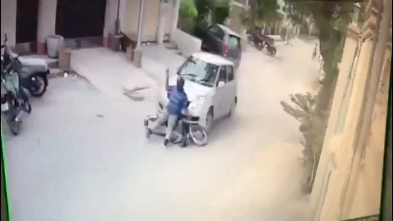 Индия, грабители на мотоцикле решили остановить жертву и отобрать у нее автомобиль. Но жертва не остановилась и уже нападающие превратились в жертв ) #чудаки #неудачники #ограбление