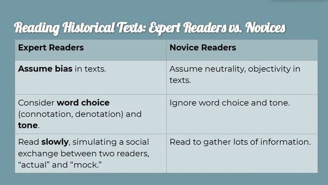 Let's look at what students can do to read as expert readers should, so as to gradually move away from reading like a novice.