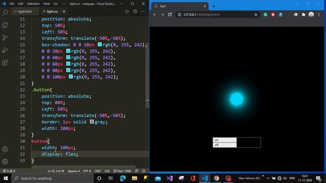 lights on and off function using html, css and js