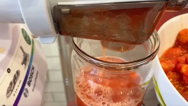 Томатный сок на мясорубке.