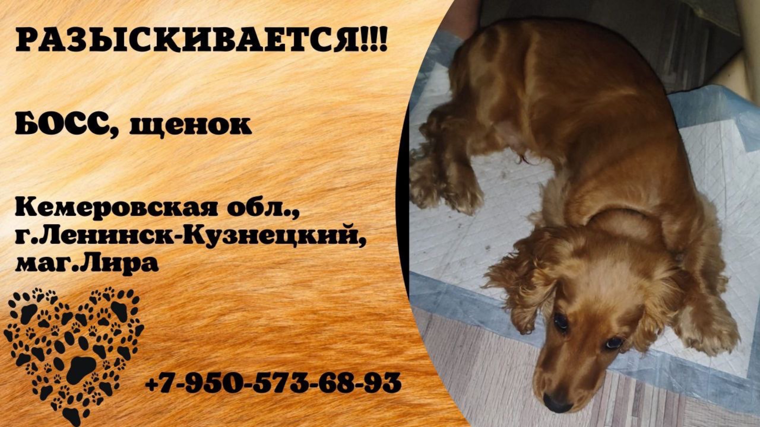 Кемеровская Ленинск-Кузнецкий Пропала собака 28.01 потерялась собака последний раз гулял около магазина Лира, отзываеться на кличку Босс кто видил на пишите или позвонить по номеру Имя хозяина: Кристина Телефон: +7 950 573-68-93 Инфо https://vk.com/wall-198815410_174516 #пропала_собака#кемеровская #ленинск_кузнецкий