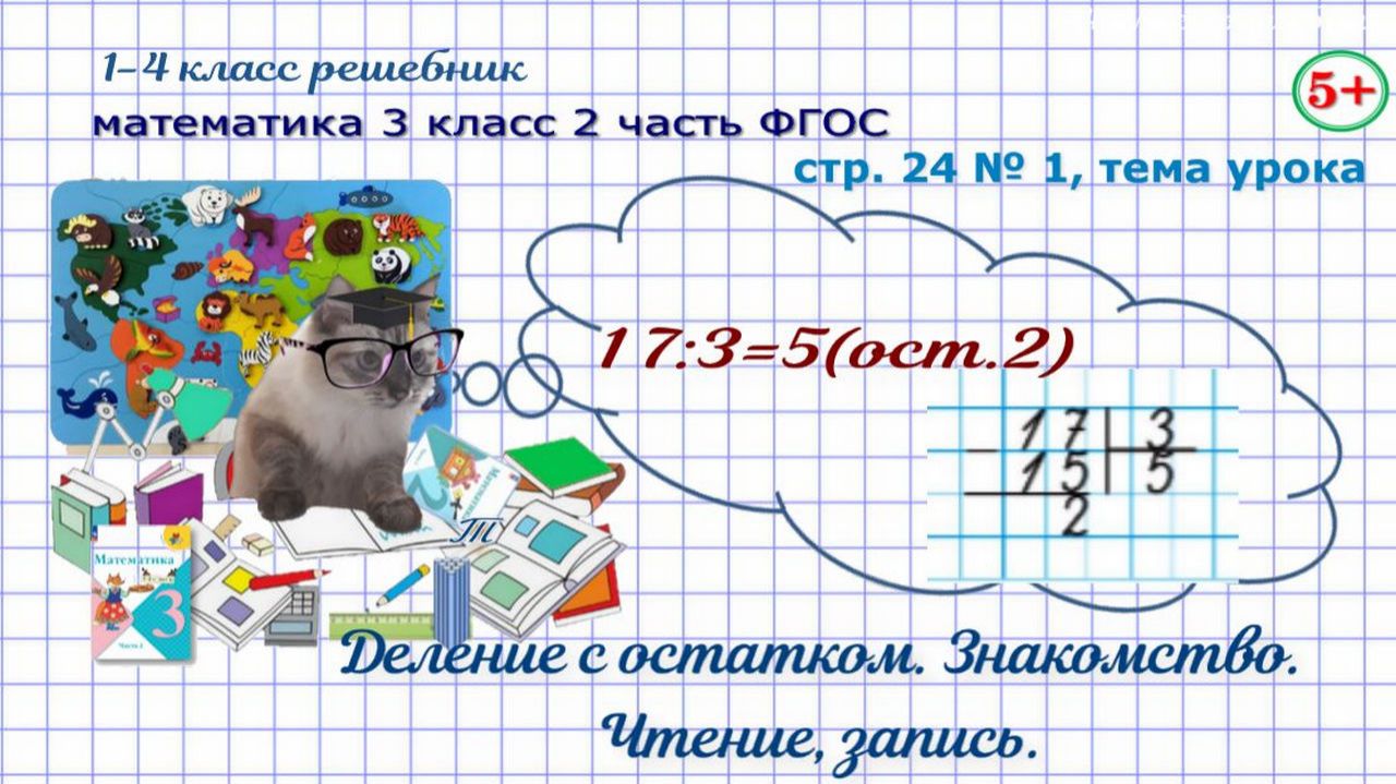 Страница 24 новая тема математика 3 класс 2 часть Моро 2023 г ФГОС ГДЗ. Деление с остатком. Знакомство, чтение, запись, решение. Обучение детей, Начальные классы. 00:08 - новая тема. Деление с остатком: знакомство, чтение, решение 00:40 - номер 1. Деление с остатком. Объясни записи, прочитай по-разному Если нашли ошибку, напишите, пожалуйста, в комментариях. Сайт с текстовым содержанием: https://dzen.ru/id/650204661aba9b0ba4b2643e #обучениематематике#математика3класс2частьстр24номер1#математика3класс2частьстр24новаятема#делениесостаткомчтениезаписьрешение#делениесостатком#обучениедетей#математика3класс1частьФГОС#математика3кл1чФГОС#математика3класс1частьморо2023#длядетей#решебникматематика3класс#гдзматематика3класс#начальныеклассы#1-4классрешебник+