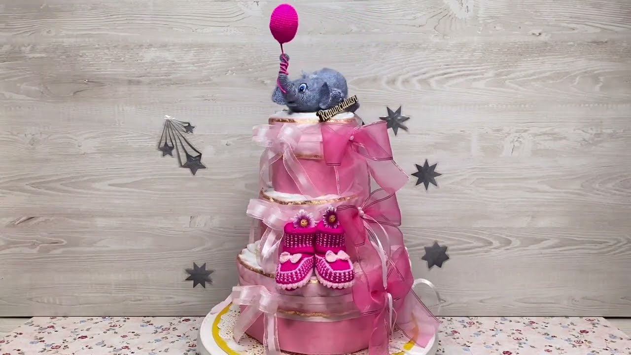 Торт из памперсов для девочки со слоненком.