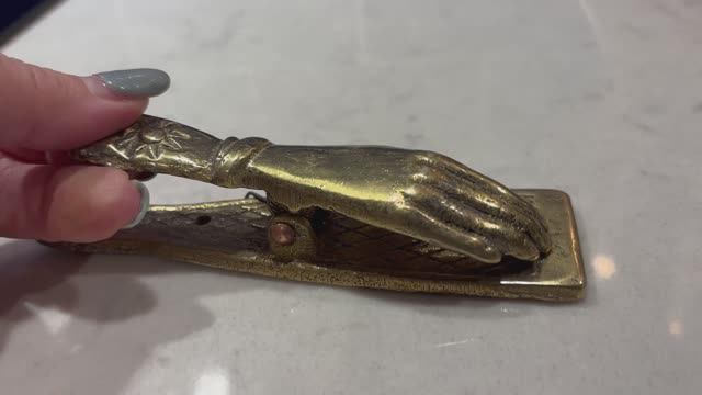 #АНТИКВАР Латунь ручной работы, Кнокер/ зажим/пришепка-рука (правая) 1950-х годов в викторианском стиле, который можно использовать в качестве держателя почты, бумаг на столе, для визитных карточек... Его также можно закрепить на стене/ дверях и использовать как кнокер - дверной молоточек. Англия. 🏴󠁧󠁢󠁥󠁮󠁧󠁿 Имеет размеры: Высота - 13,5 см; Ширина - 3 см; Длина - 3,5 см; Вес - 200 гр; Цена - 2200 руб.