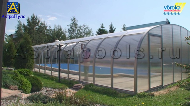 Павильон для бассейна модель Royal. Павильоны для бассейнов из Германии Voeroka, изготовление павильонов любой сложности. Навесы и укрытия, раздвижные и стационарные изготовление в кратчайшие сроки. Грамотные специалисты компании АстраПулс прошли специальное обучение в Германии, и смогут воплотить любые ваши мысли и желании для создания комфорта и уюта вокруг бассейна. Павильон Royal большой купальный зал предусматривает эксплуатацию бассейна в зимний период. Строительство павильона Royal на...