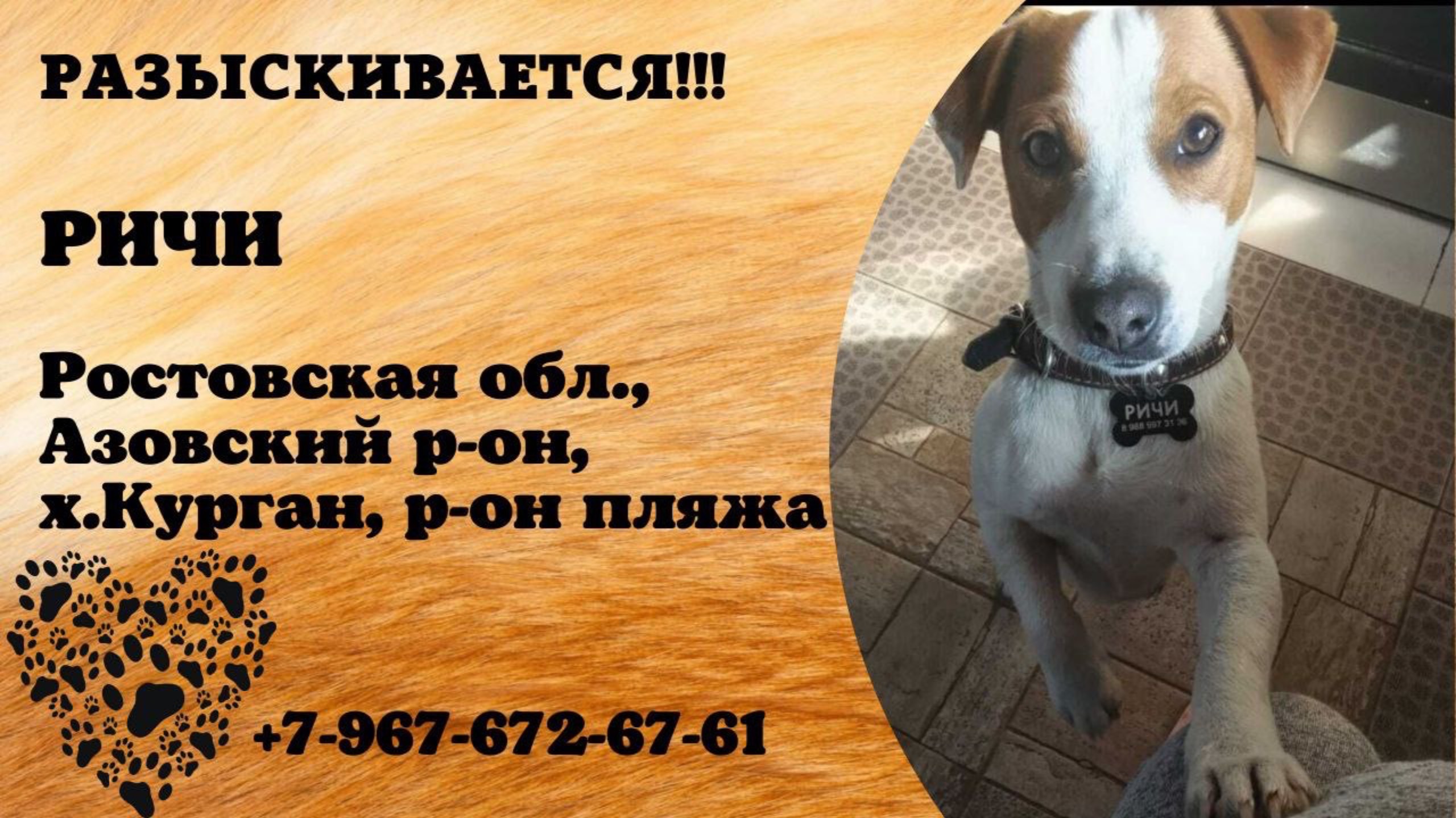 Пропала собака! РИЧИ. Ростовская обл., Азовский р-н, х.Курган.