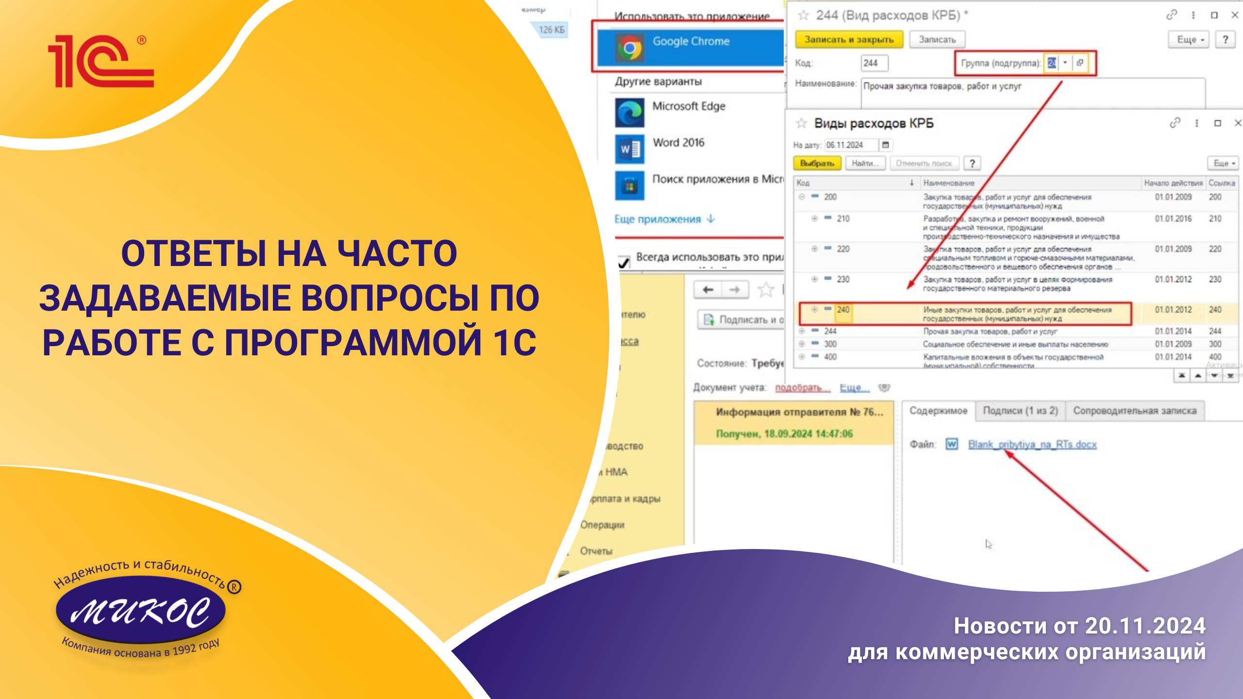 Мы хотим Вам рассказать, о чем чаще всего спрашивают наши клиенты, какие у них возникают вопросы при работе с программой 1С А также, Вы узнаете: - Отображение печати ЭЦП на произвольных документах WORD в 1С ЭДО; - Автоматическое заполнение таблицы 15 в Карточке учета организации; - Как в программе 1С:Зарплата оформить отпуск по уходу за ребенком до 1,5 лет на двойню - О рекомендациях от ТЕХНИЧЕСКОЙ ЛИНИИ КОНСУЛЬТАЦИЙ и ЛИНИИ КОНСУЛЬТАЦИЙ компании МИКОС; - Узнаете о ПОСЛЕДНИХ ИЗМЕНЕНИЯХ в программах 1С. Полезные ссылки для бухгалтеров: Бухгалтерия предприятия редакция 3.0 Новое в версии 3.0.164.20 https://news.webits.1c.ru/news/Version_Changes/html/?config=Accounting,03.00.164.0020&template=accounting В каком размере будет действовать вычет по НДФЛ на ребенка в 2025 году? https://its.1c.ru/db/answerstax/content/4820/hdoc Кто из упрощенцев будет платить НДС с 2025 года? https://its.1c.ru/db/newsclar/content/491953/hdoc Как уволить сотрудника следующим днем после выхода из отпуска по уходу за ребенком? https://its.1c.ru/db/staff1c#content:35079:hdoc Сборка основного средства из комплектующих в программе 1С:БП 8 Источник: https://www.mikos.ru/services/service/sborka-osnovnogo-sredstva-iz-komplektuyushchikh-v-programme-1s-bp-8/ Карточка учета организации (форма № 18) в программе 1С:БП8 Источник: https://www.mikos.ru/services/service/kartochka-ucheta-organizatsii-forma-18-v-programme-1s-bp8/ Особенности больничных в связи с несчастным случаем и профзаболеванием в программах 1С ЗГУ и 1С ЗУП Источник: https://www.mikos.ru/services/service/osobennosti-bolnichnykh-v-svyazi-s-neschastnym-sluchaem-i-profzabolevaniem/ Как сформировать заявку на открытие лицевого счета с выгрузкой списка в банк в программах 1С:ЗГУ8/1С:ЗУП8 Источник: https://www.mikos.ru/services/service/kak-sformirovat-zayavku-na-otkrytie-litsevogo-scheta-s-vygruzkoy-spiska-v-bank/ Ответственность в сфере прослеживаемости товаров планируют ввести с 01.01.2026 https://its.1c.ru/db/newscomm/content/491915/hdoc Платить ли упрощенцу в 2025 году НДС по отгрузкам 2024 года? https://its.1c.ru/db/newsclar/content/491931/hdoc В каком размере будет действовать вычет по НДФЛ на ребенка в 2025 году? https://its.1c.ru/db/answerstax/content/4820/hdoc Изменится ли форма книги покупок в 2025 году? https://its.1c.ru/db/answerstax/content/4822/hdoc Изменений формы книги покупок не предусмотрено. При этом меняются правила ее заполнения. Учитываются ли в 2025 году расходы при расчете лимита для освобождения упрощенца от НДС? https://its.1c.ru/db/answerstax/content/4823/hdoc Как заполнять строку 5а счета-фактуры по новым правилам с 01.10.2024? https://its.1c.ru/db/newsclar/content/492019/hdoc https://its.1c.ru/lector/index У Вас остались вопросы? 📞 Запишитесь на консультацию прямо сейчас! Звоните: +7 (351) 771-66-63 💻 Заходите на наш официальный сайт - https://www.mikos.ru 📲 А также присоединяйтесь к нам в Телеграмме: https://t.me/mikos_company 👍 Не забудьте поставить лайк и подписаться на наш канал! Будьте в курсе выхода новых видео! 💬 Если остались вопросы? Оставь комментарий ниже, и наши эксперты ответят вам!