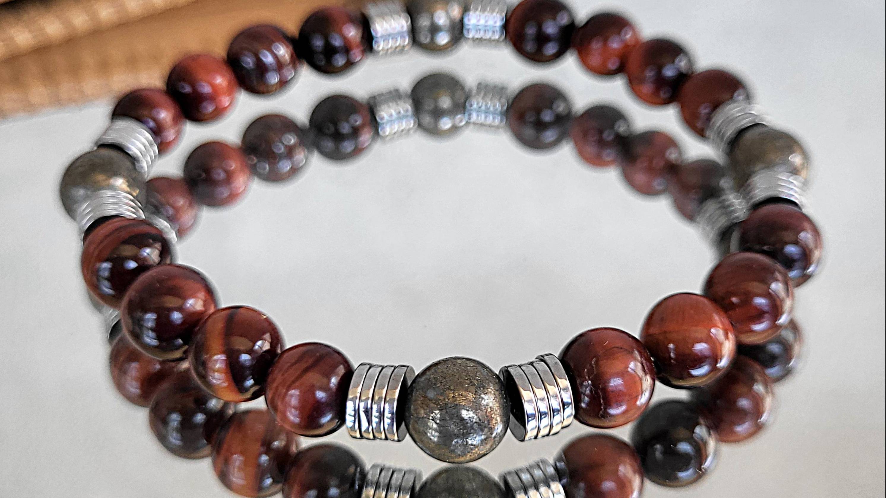 Браслет из бычьего глаза, пирита, гематита