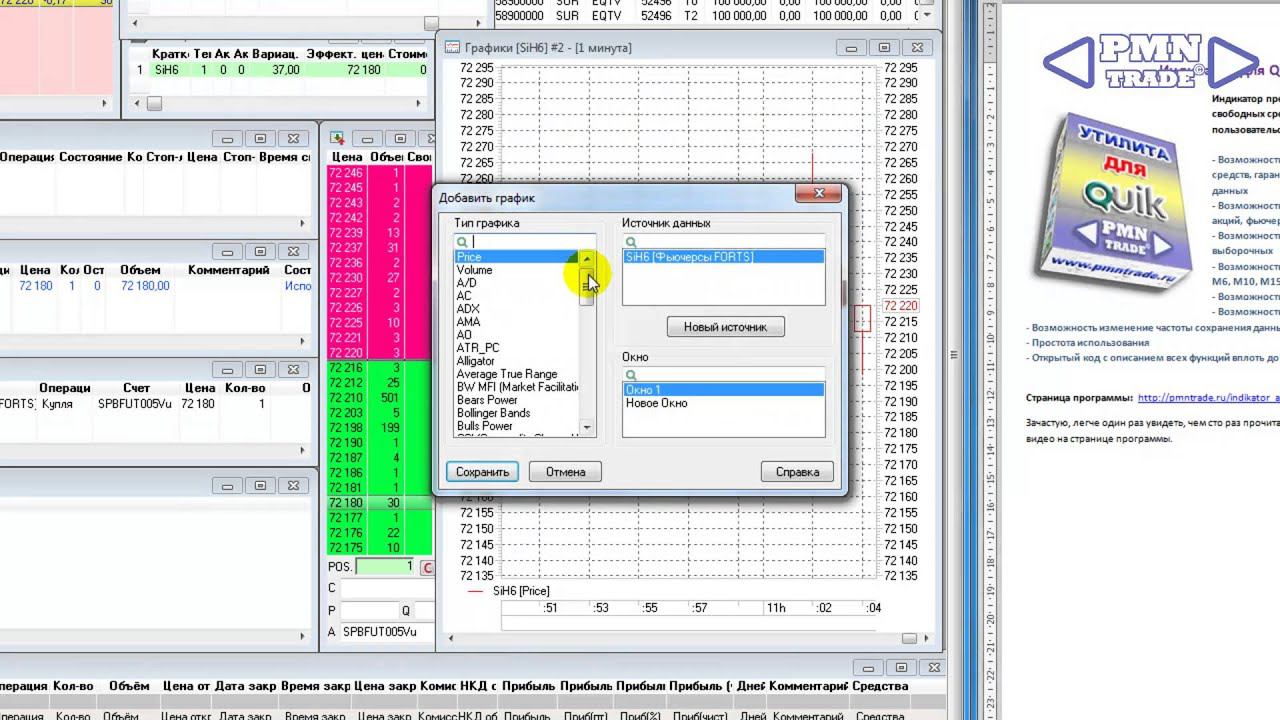 Индикатор для QUIK «История счёта». Установка для фьючерсов.