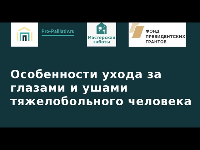00:00 - Вступительное слово 00:39 - Основные правила при уходе за тяжелобольными. 02:00 - Уход за глазами и ушами важен и необходим поскольку:. 02:35 - Умывание лица. 03:18 - Уход за глазами. 03:52 - Основные правила ухода за глазами. 5:25 - Сама процедура. 06:30 - Как правильно закапывать в глаза. 07:45 - Зрение необходимо периодически проверять. 09:42 - Домашняя проверка зрения. 11:04 - Советы по организации пространствадля слабовидящего. 12:44 - Советы по коммуникации для слабовидящего. 13:26 - Как правильно ухаживать за очками. 14:05 - Хронические заболевания приводят к снижению четкости зрения. 14:30 -Осложнения при сахарном диабете. 15:04 -Важно 15:30 - Строение уха. 16:12 - Качественная обработка полости рта. 16:45 - Уход за ушами. 19:03 - Основные правила ухода за ушами. 20:00 - Как и что необходимо делать. 20:39 - Компресс на ухо. 22:12 - Правила пользования слуховыми аппаратами. 24:12 - Правила общения с человеком с нарушением слуха. 26:32 - Что такое ушная сера? 27:10 - Функции ушной серы. 28:05 - Зуд в ушах. 30:50 - Необходимо получить консультацию врача, самостоятельно лечение ушей противопоказано! 31:26 - Важно. 32:23 - Вопросы.
