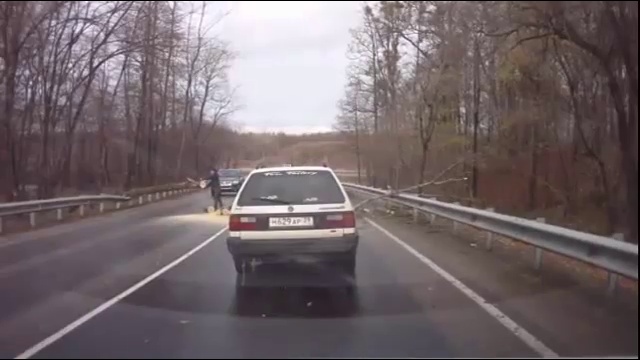 Место действия - Калининград. Поехали жена с девченками в гости за город. И тут на дорогу падает дерево. Спасибо огромное, человеческое, парню на белом фольксвагене, за то, что он возит бензопилу в багажнике. Теперь думаю тоже прикупить и научить жену пользоваться.