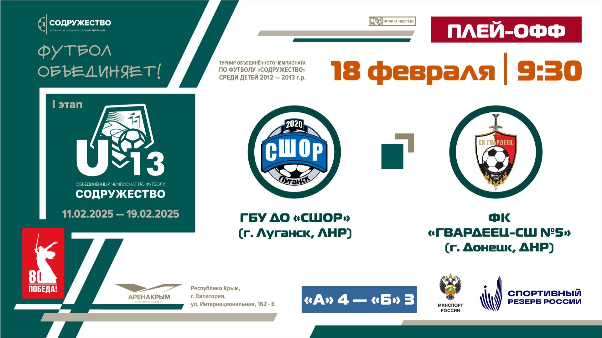 Плей-офф за 5-8 места | ГБУ ДО "СШОР" (г. Луганск, ЛНР) - ФК "Гвардеец - СШ №5" (г. Донецк, ДНР)