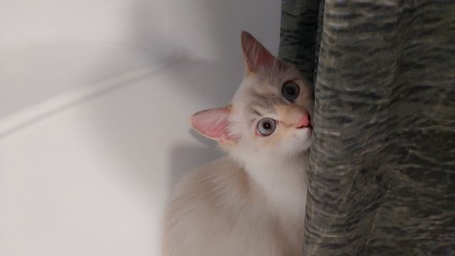 Балинезийский, голубоглазый котёнок ? Стешка забрался в ванную