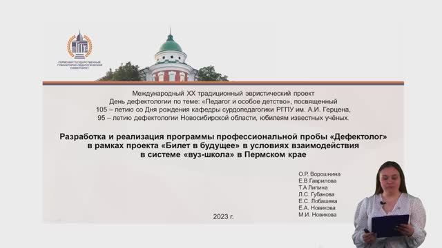 Разработка и реализация программы профессиональной пробы "Дефектолог" в рамках проекта "Билет в будущее" в условиях взаимодействия в системе "ВУЗ-школа" в Пермском крае