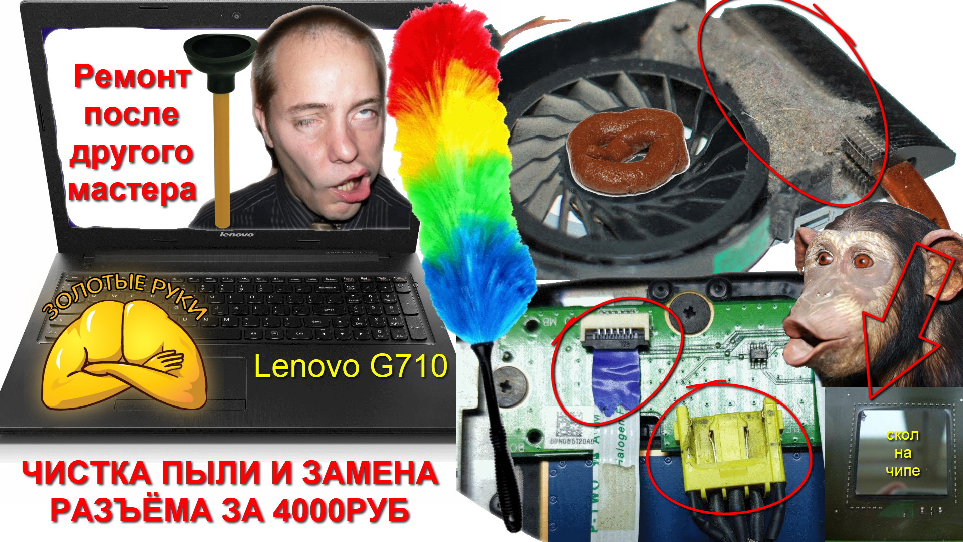 Треш ремонт после мастеров Lenovo G710 замена разъёма зарядки за 4000руб.