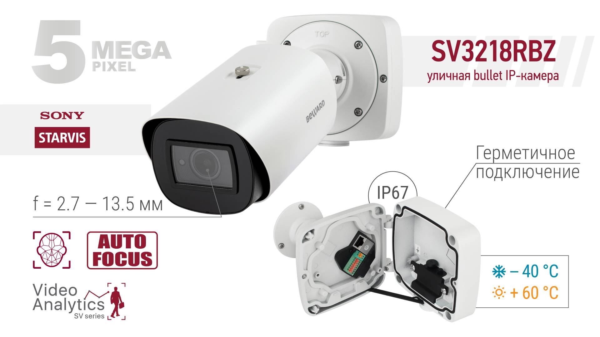 BEWARD SV3218RBZ: 5 Мп Starvis, монтажная коробка, обновленная аналитика, моторизованный объектив