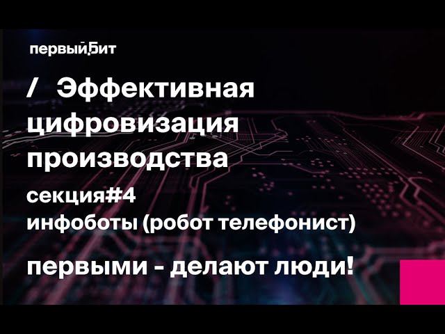 Запись онлайн-форума "Эффективная цифровизация производства". Секция №4 — Инфоботы (робот-телефонист): — Как освободить отдел продаж от рутинных холодных звонков, при этом увеличить продажи? — Сервисные звонки без человека. Только честная обратная связь от клиентов, которая помогает вам расти и быть первыми! — Колл-центр, который никогда не устаёт.