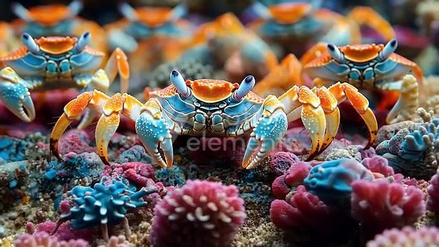 41699644_MotionElements_adorable-group-of-crabs-walking-in-the-colorful-gravel_preview