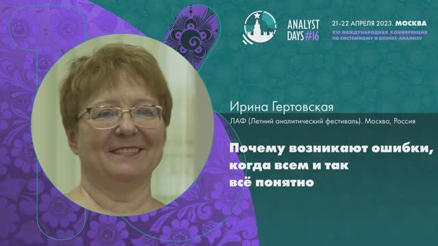 Analyst Days 16 — Ирина Гертовская, Почему возникают ошибки, когда всем и так всё понятно