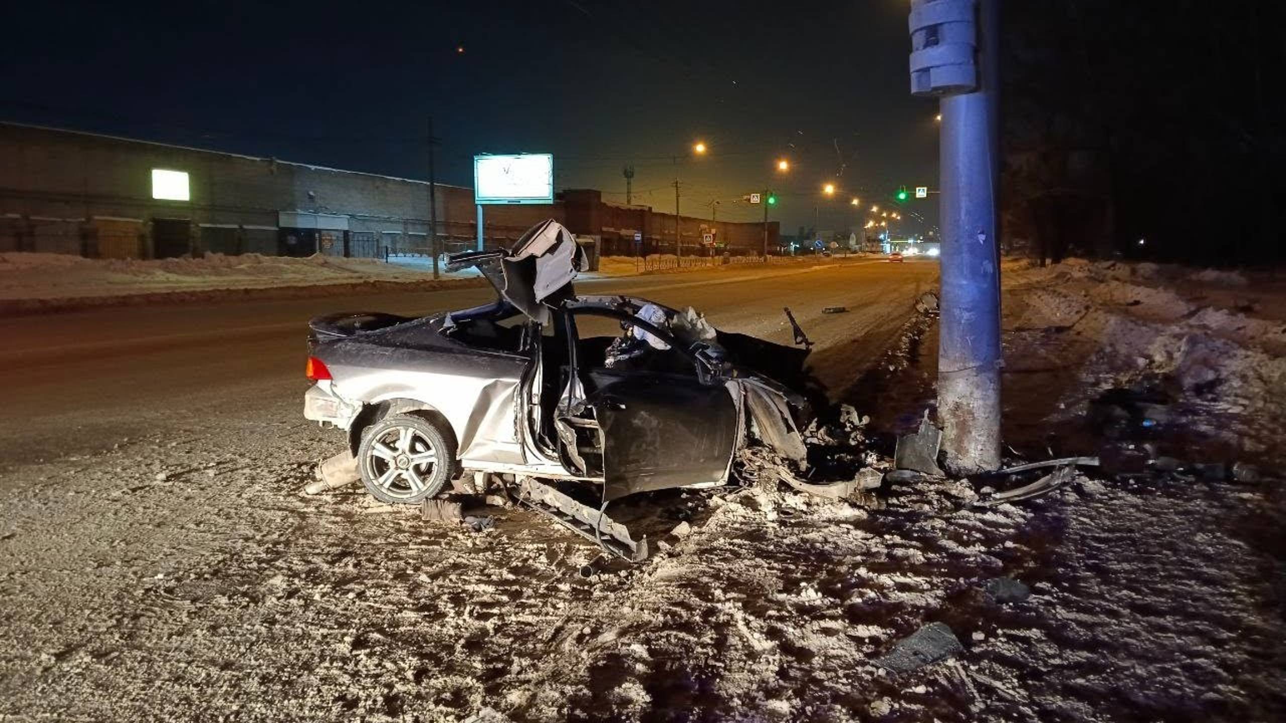 «Передок "Интегры" разнесло об фонарный столб». Водитель погиб в ДТП в Новосибирске.