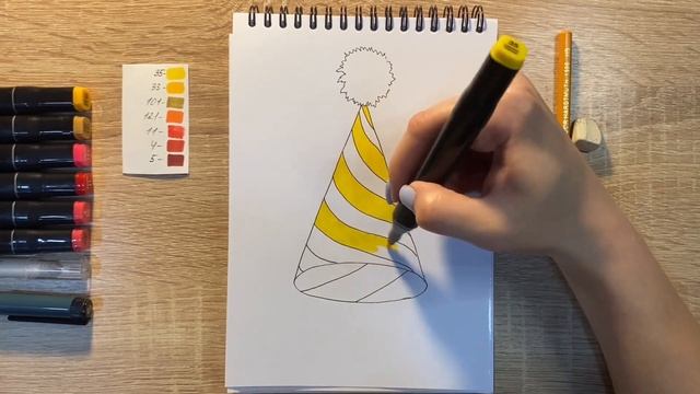 Как нарисовать колпак карандашом и скетч маркерами | Рисунок для детей, поэтапно и легко