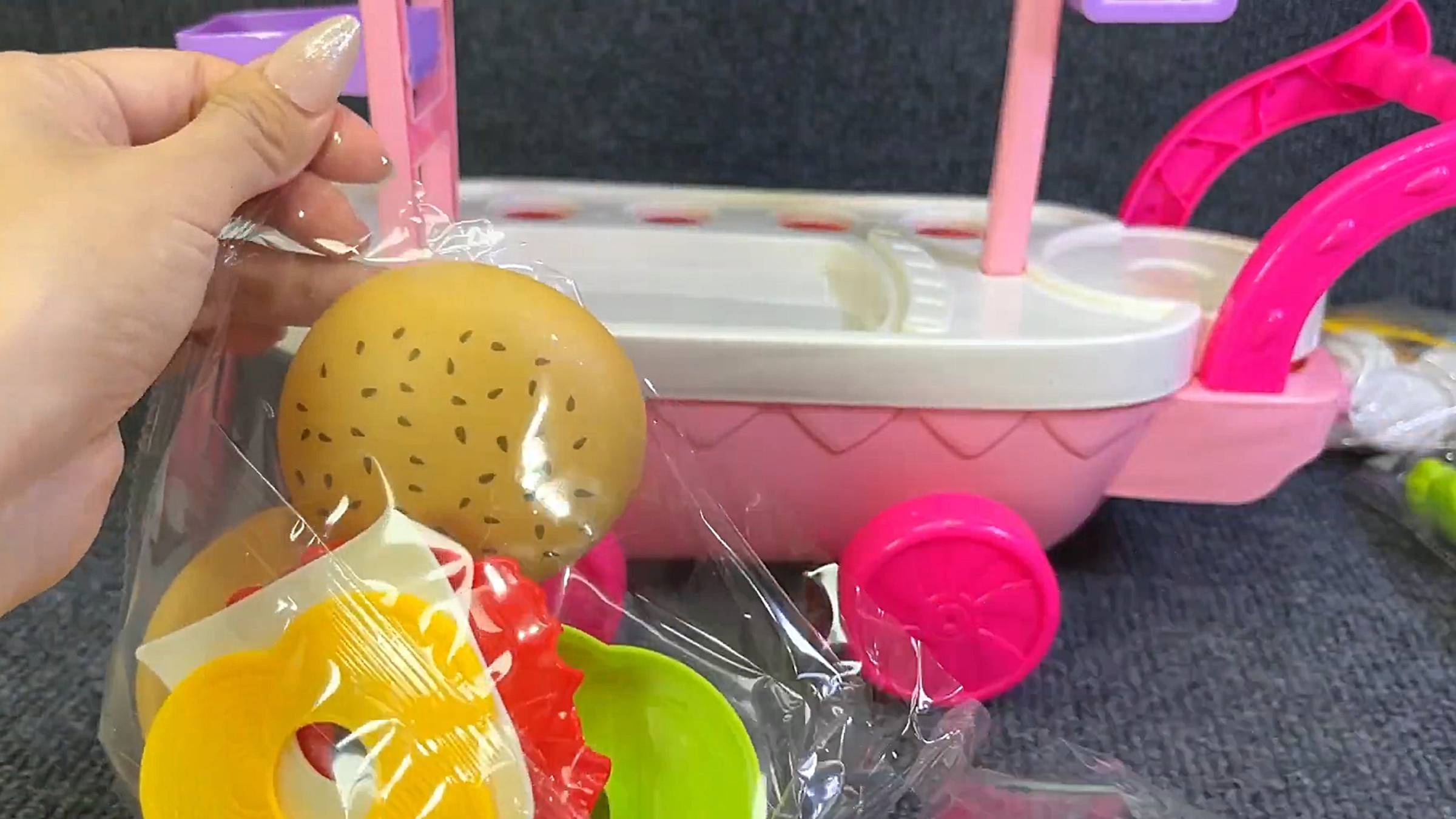 Мультики для малышей. Развивающие игрушки. Распаковка игрушки-тележки с мороженым и чизбургером