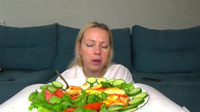 Мукбанг курица по французски, овощи.еда на камеру.