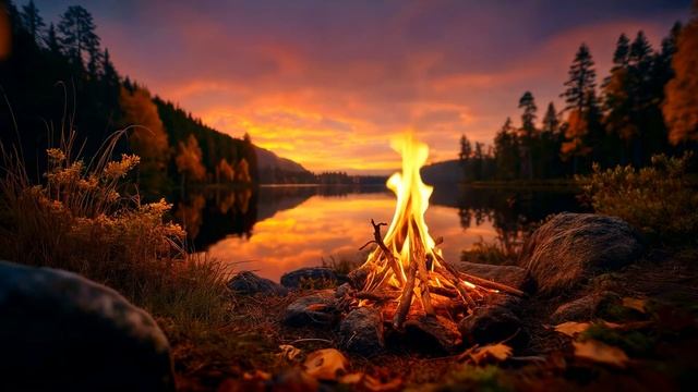Осеннее сияние у воды | Уютные звуки костра в атмосфере заката