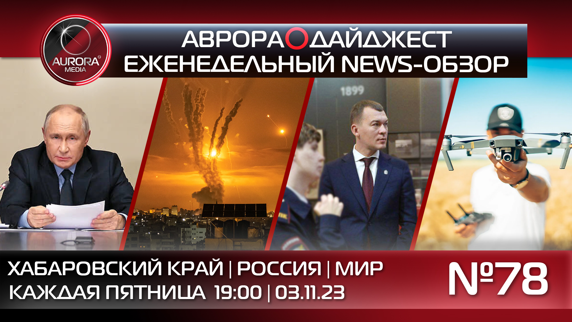 ⭕ АВРОРА⭕МЕДИА ЕЖЕНЕДЕЛЬНЫЙ ВИДЕО NEWS-РАЗБОР НЕДЕЛЯ | 27.10 – 03.11.23 АВРОРА⭕ДАЙДЖЕСТ №78 ⭕ НОВОСТИ ХАБАРОВСКОГО КРАЯ 1:15 Профессиональный «Медицинский кластер» создадут в Хабаровском крае 1:55 Ход исполнения краевого бюджета обсудили на заседании правительства 2:36 В районах Хабаровского края появятся центры по обучению пилотированию БПЛА 3:20 В Регионе построят ещё один мост через Амур 4:08 В Комсомольске прошел дальневосточный педагогический конгресс 4:52 «Амур» одержал победу над «Витязем» ⭕ НОВОСТИ РОССИИ 5:38 29 октября толпа протестующих осадила аэропорт в Махачкале 6:01 Владимир Путин провел совещание после беспорядков в Дагестане 6:30 Какие изменения ждут россиян в ноябре 2023 года ⭕ НОВОСТИ МИРА 7:20 ЦАХАЛ продолжает расширять наземные операции в секторе Газа 8:00 Митинг в поддержку палестинцев прошел в Стамбуле #аврорамедиа_дайджест ⭕ Telegram-экосистема АВРОРА⭕МЕДИА МЕДИА | НОВОСТИ | РЕГИОН | ЛАЙФ | СПОРТ | ГЕРЛЗ | ХАЙТЕК | ПЕРСОНЫ | МОЛОДОСТЬ | НОЖЕНКОLIVE YOUTUBE АВРОРА⭕МЕДИА || Телеграмм-экосистема А⭕М: | АВРОРА МЕДИА @aurora_media https://t.me/aurora_media | АВРОРА НОВОСТИ @news_aurora https://t.me/news_aurora | АВРОРА ХАБАРОВСК @khv_aurora https://t.me/khv_aurora | АВРОРА ЛАЙФ @life_aurora https://t.me/life_aurora | АВРОРА СПОРТ @sport_aurora https://t.me/sport_aurora | АВРОРА ГЕРЛС @girl_aurora https://t.me/girl_aurora | АВРОРА ХАЙТЕК @ht_aurora https://t.me/ht_aurora | АВРОРА ПЕРСОНЫ @people_aurora https://t.me/people_aurora | АВРОРА БЛОГ @media_aurora https://t.me/media_aurora || Aurora_Media: | Российское Информационное Агентство | +7(4212)900-900 media@auroragroup.info | +7(909)800-71-11 messenger #аврорамедиа #дайджест #новости #новостироссии #новостимира #новостихабаровска #новостидв
