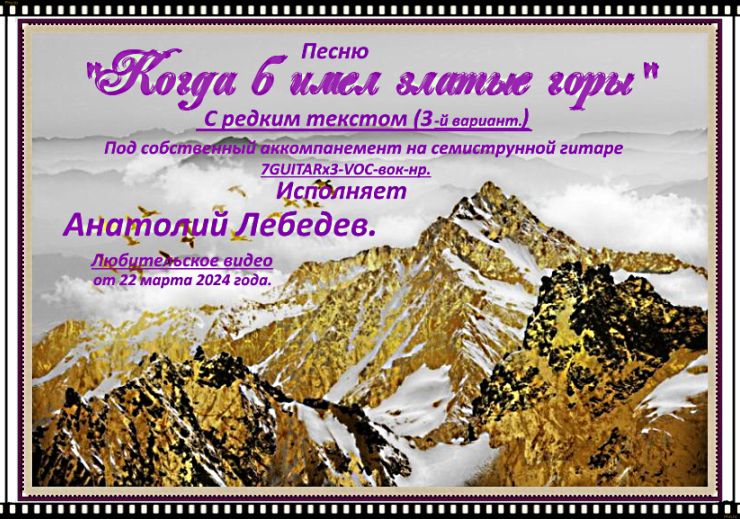 КОГДА Б ИМЕЛ ЗЛАТЫЕ ГОРЫ-3 вар.-(Под 7GUITARx3VOC-вок-нр) Исп.А.Лебедев. Видео от 22.03.24 года.