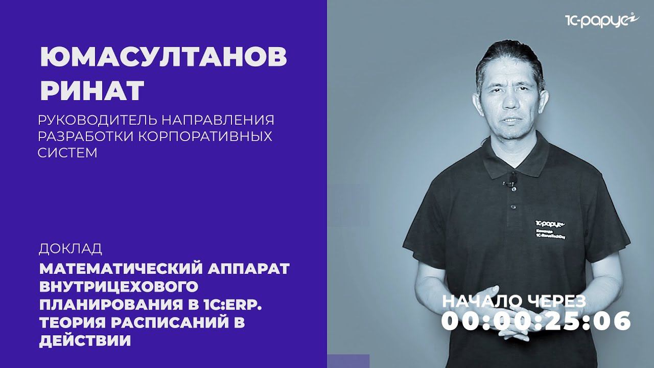 Доклад: «Математический аппарат внутрицехового планирования в 1С:ERP. Теория расписаний в действии», Юмасултанов Ринат, руководитель направления разработки корпоративных систем. 0:00 Представление докладчика 2:02 Доклад Программа конференции и отдельные записи докладов (будут добавлены после 28 июля 2021): https://rarus.ru/events/20210722-1c-rarustechday-2021-471192/ Список предстоящих мероприятий 1С-Рарус: https://rarus.ru/events/ Полная запись конференции: https://youtu.be/0P7GlejSmSs