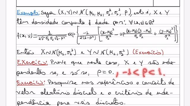 Continuamos como o estudo de variáveis aleatórias independentes, abordando o critério de independência para variáveis aleatórias contínuas. Tratamos também de composições de variáveis aleatórias independentes e brevemente de vetores aleatórios independentes. Referências: 1- James, Barry R., Probabilidade: Um Curso em Nível Intermediário, IMPA. 2- Karr, Alan F., Probability, Springer 1993. 3- Magalhães, Marcos N., Probabilidade e Variáveis Aleatórias, edUSP 2006.