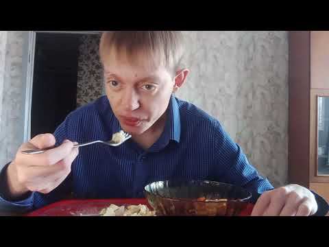 Мукбанг//Вермишель с печенью и салат