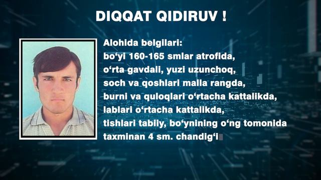 Бедарак йўқолган Бўриев Камолиддин Усмонович қидирилмоқда.