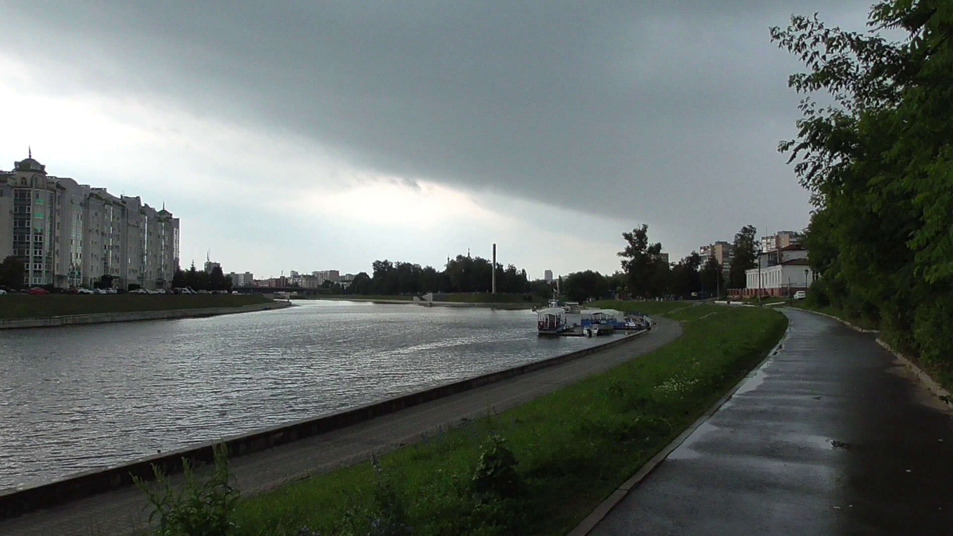 Набережная, река и небо. Дождь пошёл в городе. Я под зонтом, сегодня 20 июня 2024 год