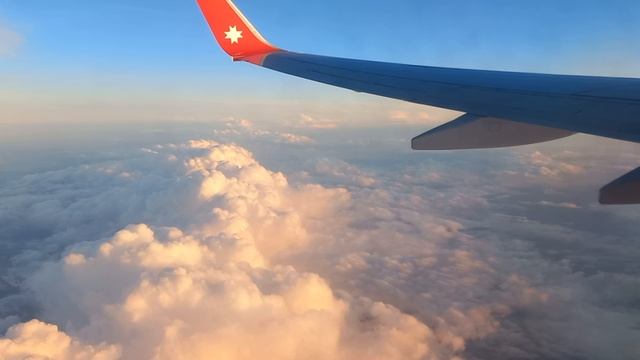 Закатные краски с борта самолета. Облака над Уральскими горами сделали из них почти Гималаи!
