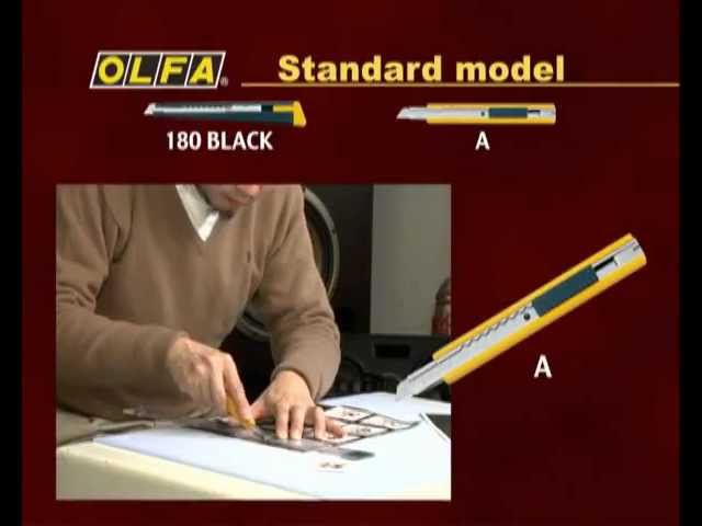Стандартный нож OLFA (Олфа) 180 BLACK http://zenonline.ru/cat/000014200 - современный, многофункциональный, популярный нож для работы по дому и офису. Важная особенность этого ножа - это наличие металлической рукоятки. Данный нож можно использовать для порезки бумаги, картона, кожи, плёнки, ткани и различного рода упаковочных материалов.
