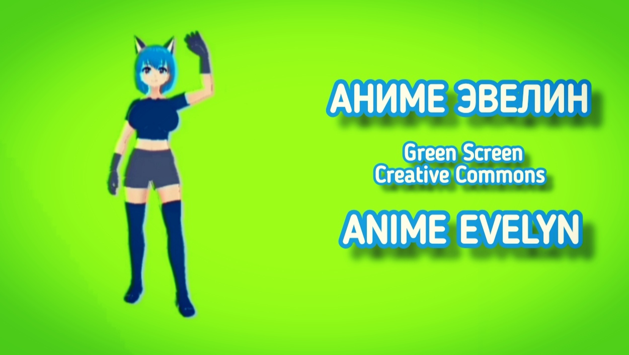 Аниме персонаж Эвелин green screen, chromakey animation.