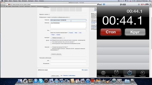 Пример загрузки видео на YouTube с моим новым интернетом