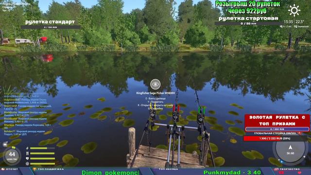 Поддержка донатом https://www.donationalerts.com/r/kalyamba11 Альтернативный донат https://new.donatepay.ru/@1032463 Мой ВК - https://vk.com/kalyantv НИК в игре kalyan11 НАШ ДИСКОРД СЕРВЕР https://discord.gg/mSbnTJK8TB Заказ водоема на 1 час - 500р ( весь стрим 2500р ) Модерка на канале 1100р ( каждая следующая на 100р больше) Озвучка доната на 40р,50р,100р,200р,300р,500р,1000р ✅Призы в рулетке СТАНДАРТ : ✔ катушка "Раптор 40" ✔ катушка "Venga 10000" ✔ катушка "Оверлорд 88" ✔ катушка "Full metal 60" ✔ Среднелегкий спиннинг "Inspiration S78Ml" ✔ Тяжелый кастинговый спиннинг "Барракуда" ✔ Морское Донное удилище ✔ прем ( 3, 7, 30 дней) ✔ золото ( 1, 3, 5, 10, 20 ,50) ✔ билет на море ( 1, 3, 5 дней) ✔ голд наживка и др. ✅Призы в рулетке "СТАРТОВАЯ" ✔ катушка "silver80" ✔ катушка "Full metal 60" ✔ катушка "Черный калибр" ✔ катушка "Протон" ✔ катушка "Нарга 6000" ✔ Набор Фидерист и спинингист ✔ Карповик Фортуна ✔ фидерные удилища ✔ прем, золото, алкашка, наживки и тд Вечный ТОП ПОДДЕРЖКИ (11.05.2024) 1. Dimon_pokemonchik 119 784 2. Interceptor 75 508 3.Skreb79 71 261 4. une personne 68 619 5. Нарвал77 31 550