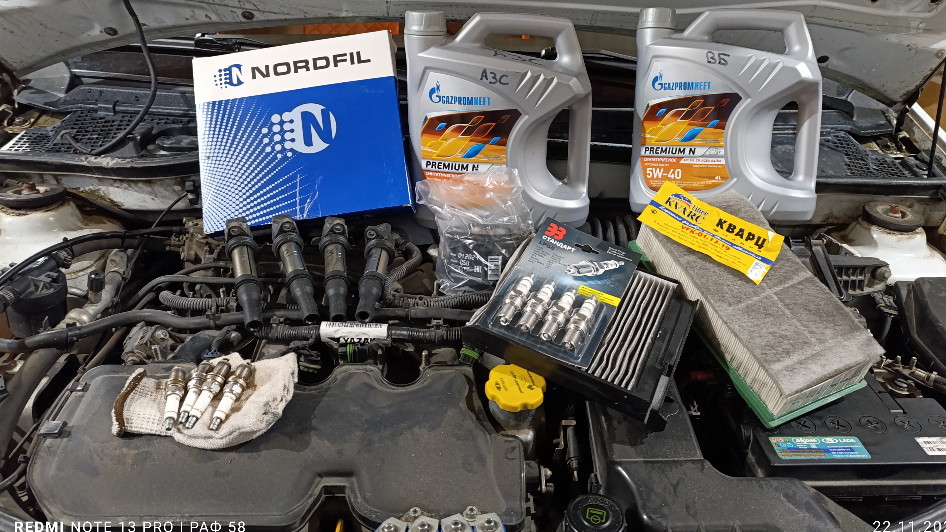 Замена масла, фильтра, свечи зажигания. Газпромнефть премиум N. 112K.