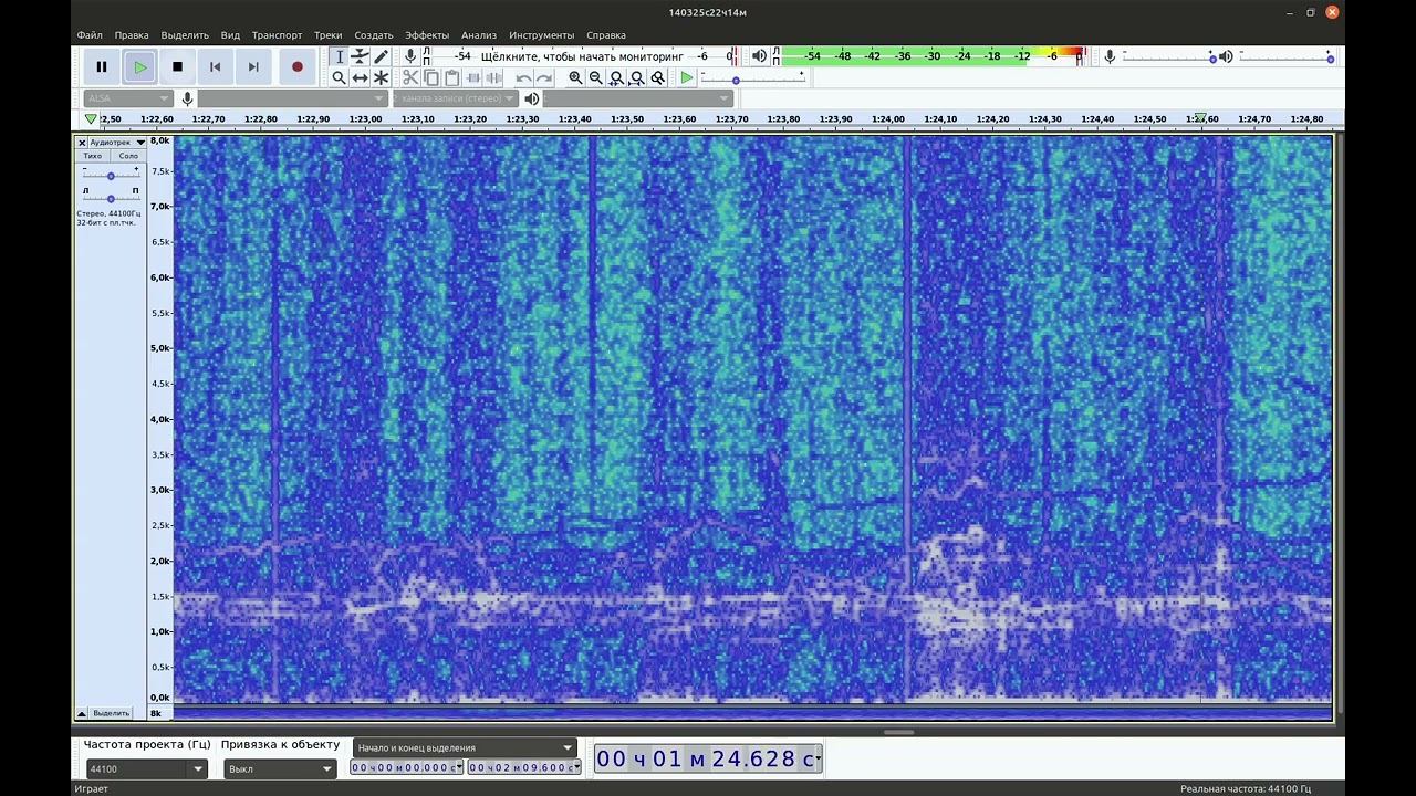 ЭНЧ звук 14-03-2025 старт22:14(UT+3h) 36ч - ускорено 1000Х - 1 Гц = 1000 Гц