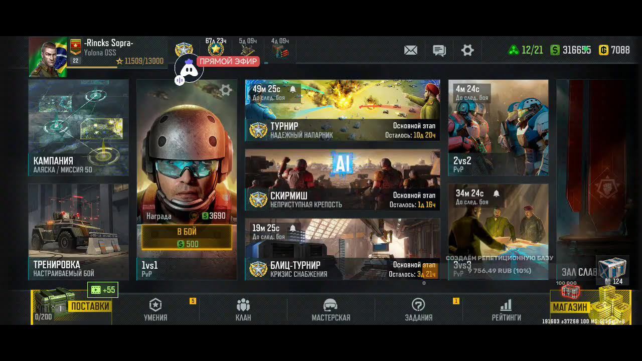 Поддержка автора по ссылке: https://www.donationalerts.com/r/rincks Бланк банк 4375571500040653 телеграм группа для подписчиков https://t.me/art_of_war_3_rincks_sopra Продлить стрим:300 руб Смена фракции:200 руб Тренировка:300 руб 2х2: по совести Покажи кач: миллион рублей Закончить стрим:1000 руб Так же можно заказать челлендж. тоесть дать стримеру задание за определенную сумму. Например: сыграть только авиацией или вообще без неё,ну и так далее. Ссылка на игру: Долго искал настоящую стратежку на телефон, как старкрафт. Наконец нашел Art of War 3! Очень крутая игра! Вот ссылка, качай, тебе понравится: https://redirect.appmetrica.yandex.com/serve/169878688668608468?recruiter_id=1111515909