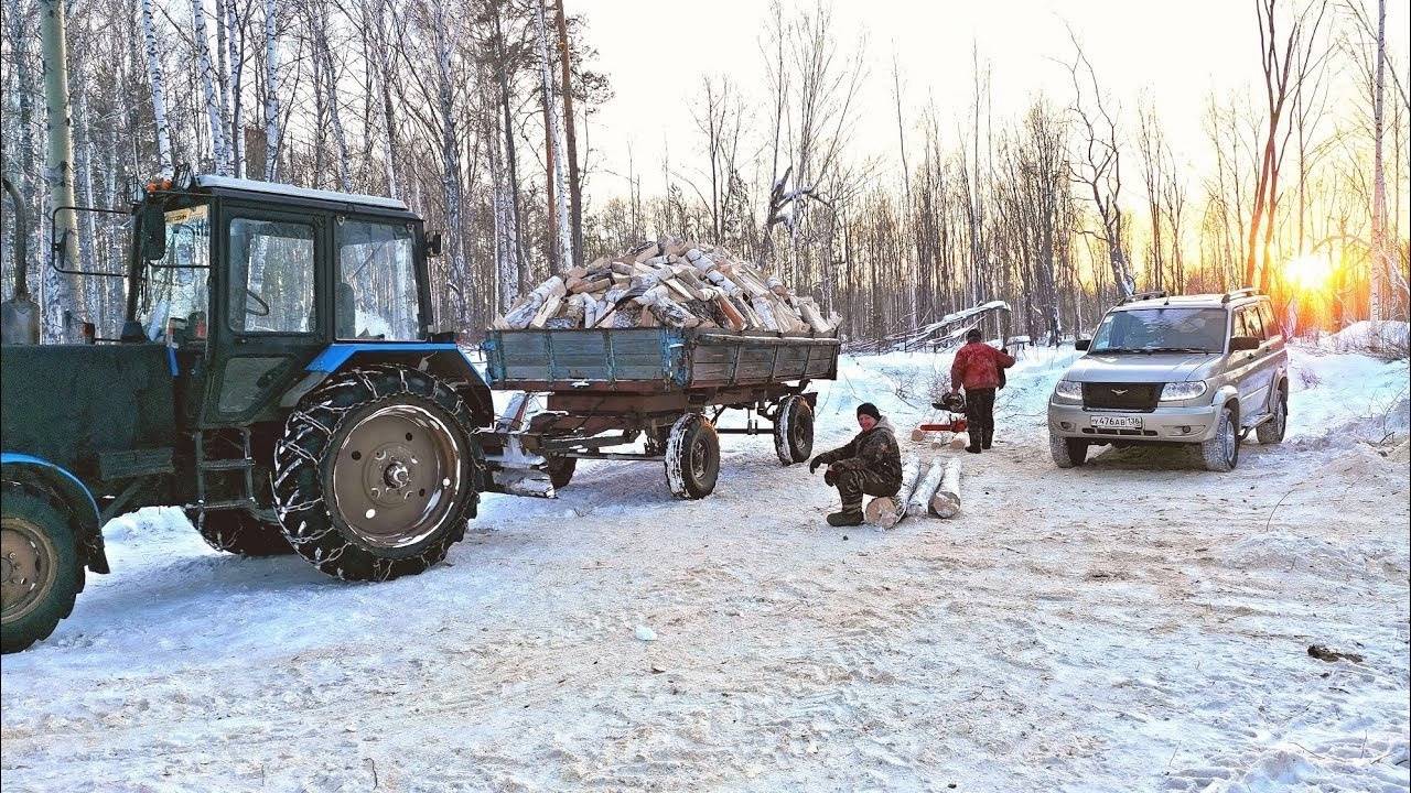 ЗАГОТОВКА ДРОВ В СИБИРСКОЙ ДЕРЕВНЕ.ВЕЗЁМ ДРОВИШКИ БАБУШКЕ.