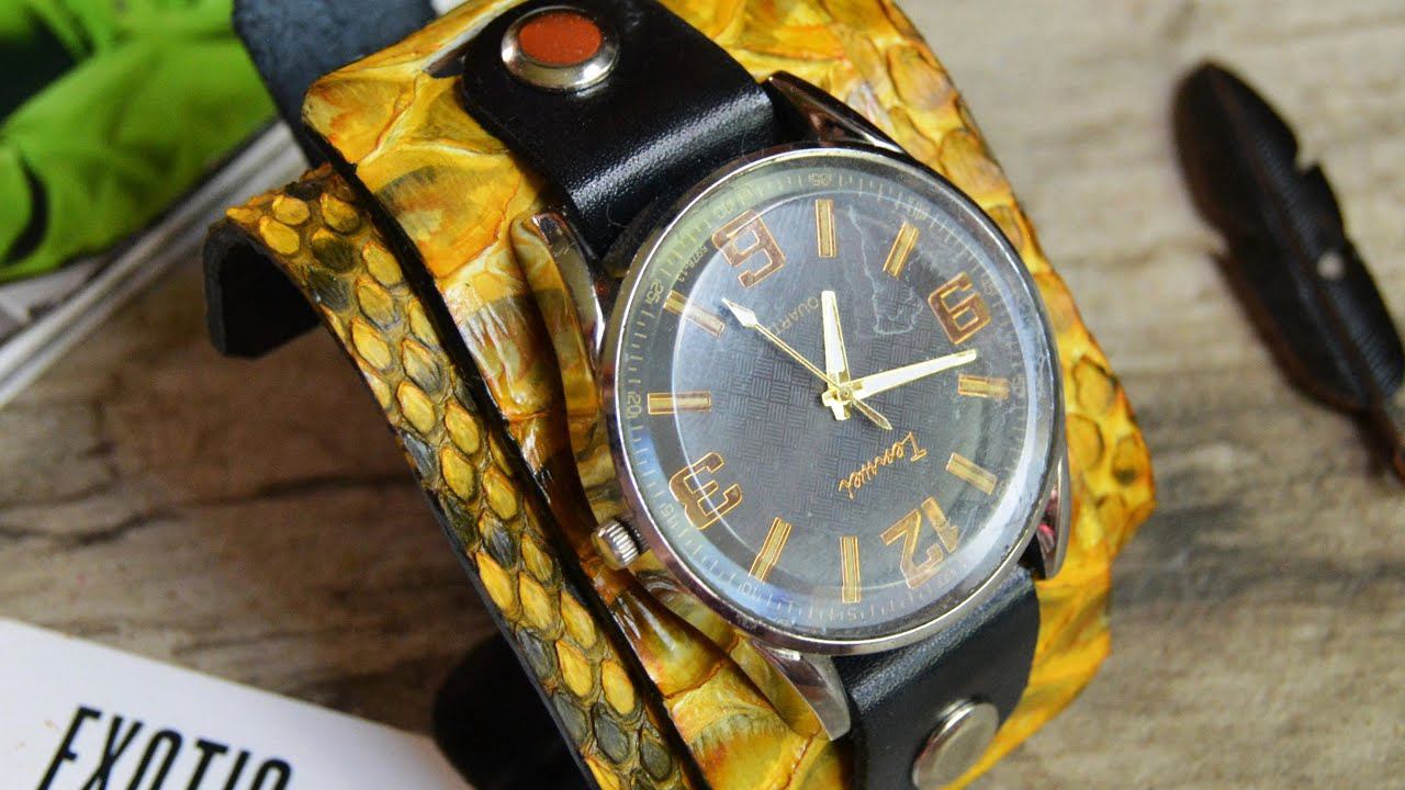Часовой браслет из шикарной кожи питона Жёлтый тюльпан