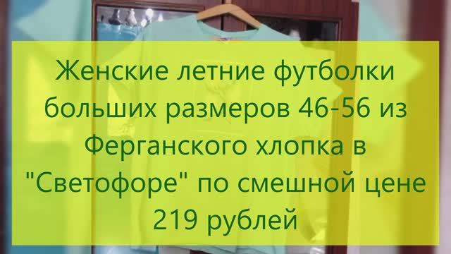 Обзор четырех женских летних футболок, размера 54 из Ферганского хлопка, купленных в "Светофоре" по смешной цене -219 рублей. Реальные клевые ощущения от носки футболки!