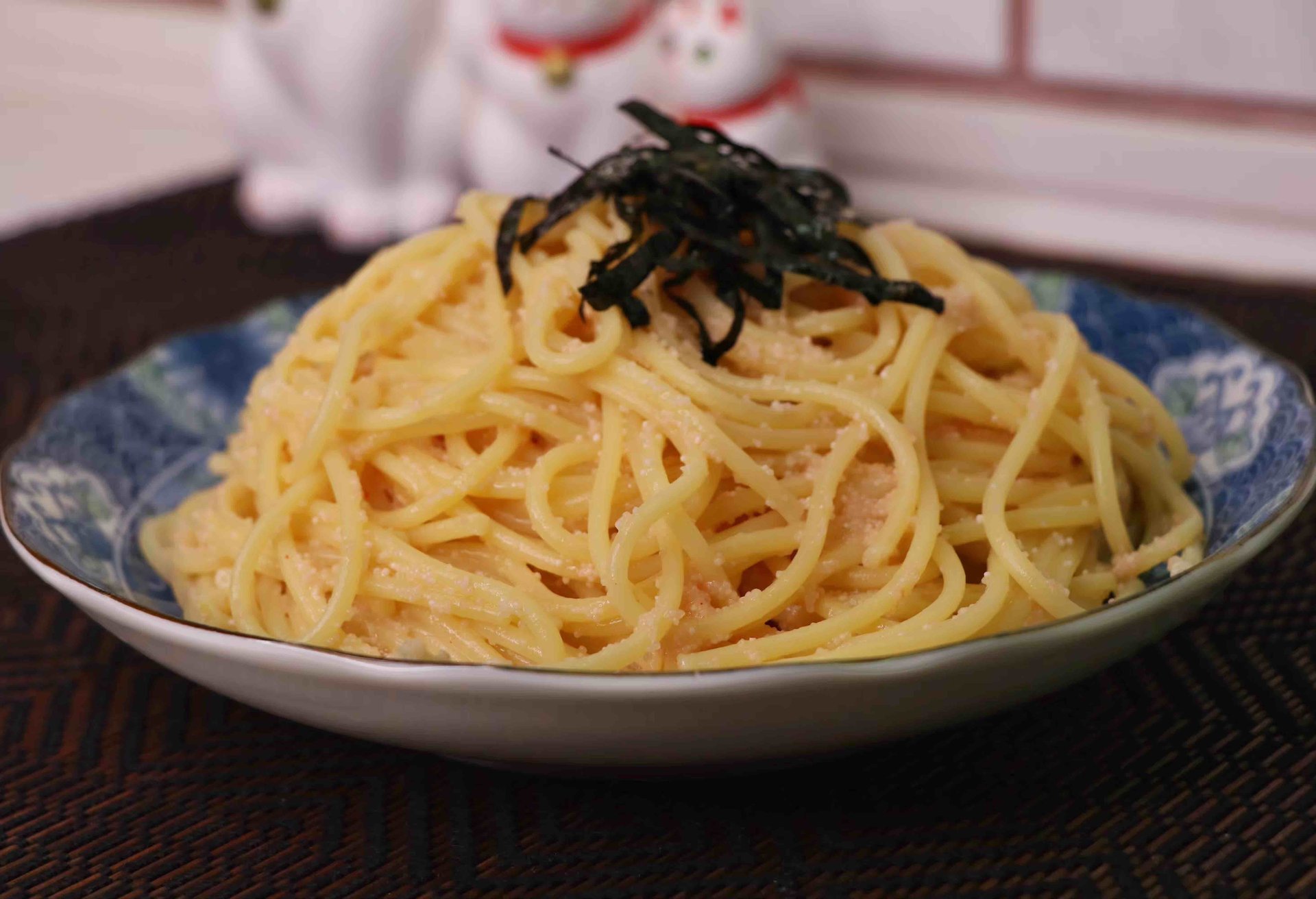 Ингредиенты: ( на 2 порции ) 1. Икра Минтая - 70-80 г. ( свежая или консервированная + острый соус по желанию ) 2. Оливковое масло - 2 ст.л. 3. Чеснок - 1 зубчик. 4. Сливочное масло - 25 г. 5. Спагетти - 200-250 г. 6. Соль, водоросли Нори - по вкусу.